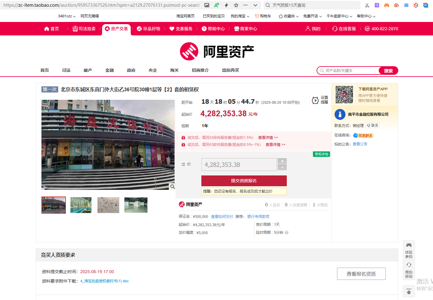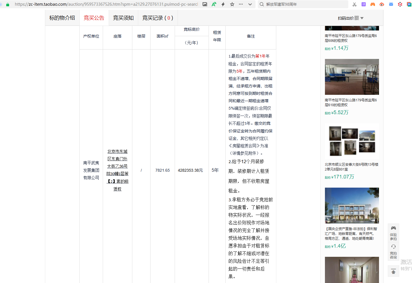 北京市東城區(qū)東直門外大街乙36號(hào)院30幢1層等【2】套的租賃權(quán)競(jìng)買鏈接