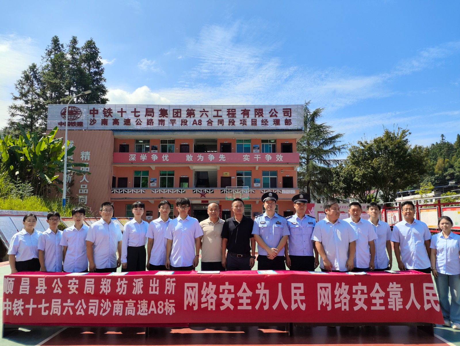 為筑牢職工網(wǎng)絡(luò)安全意識,塑造更高層次、更具前瞻性的維護,9月10日,中鐵十七局六公司沙南高速A8標聯(lián)合順昌縣公安局鄭坊派出所開展以“網(wǎng)絡(luò)安全為人民,網(wǎng)絡(luò)安全靠人民”為主題的網(wǎng)絡(luò)安全宣傳周活動。