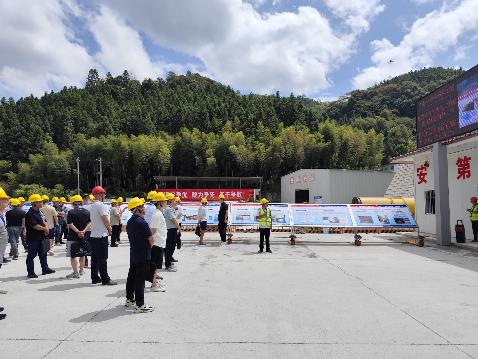 田木芳講解道,項目始終堅持科技創(chuàng)新,重視安全保障,由此設(shè)計研發(fā)了一套全方位的隧道安全信息化管理平臺。該平臺采用“人機料法環(huán)”動態(tài)管理,進行實時跟蹤,杜絕安全隱患,為緊急情況中采取應急措施提供及時、必要的數(shù)據(jù)支持和技術(shù)支持。同時,他還介紹了七寶峰隧道中隧道遠距離輸送升降壓設(shè)備、永磁變頻軸流式對旋風機、三維激光掃描儀、多功能掃地設(shè)備等亮點內(nèi)容,并與觀摩團就防排水標準化施工、洞門墻標準化施工等工作內(nèi)容進行實地交流和深入探討。